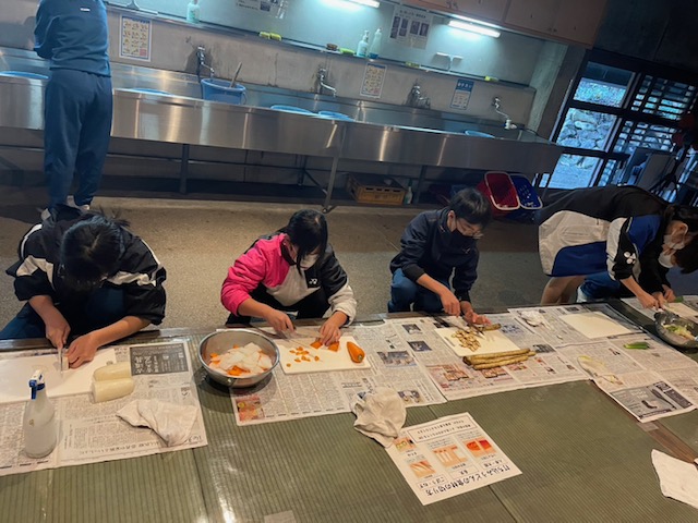 五色台集団宿泊学習2日目、午前中はウォークラリー、午後からはカレー作りを行いました。ウォークラリーでは班で協力してクイズなどに答えながら五色台周辺を散策しました。カラー作りではそれぞれが役割を果たし、美味しいカレーを食べることができました。この後はキャンドルサービスを行う予定です。全員元気に過ごしています。