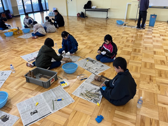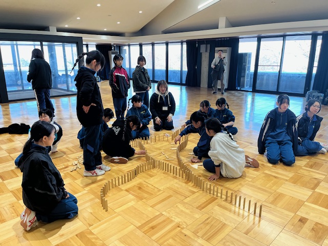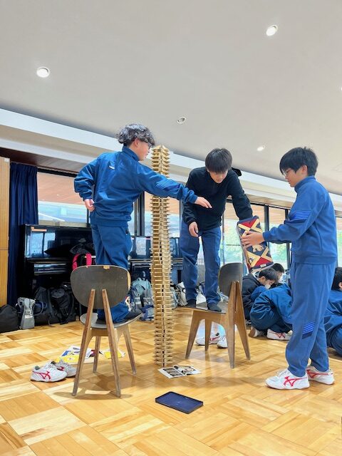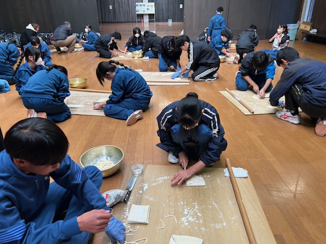 五色台集団宿泊学習3日目、朝食を食べた後、うどん作りを行いました。かまど・調理班、うどんつくり班、竹箸班に分かれ、それぞれ活動しました。またカプラを使用してドミノ倒しをしたり高さを競って遊んだりしました。この後、フェリーに乗船します。高松港15:10発のフェリーに乗り、16:10頃に土庄港に着く予定です。お迎えに来られる際はお気をつけてお越し下さい。
