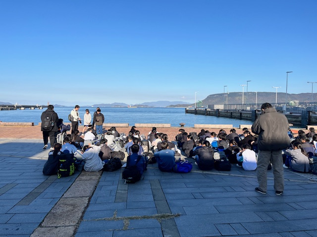 五色集団宿泊学習1日目、正午前に五色台に到着し、午後から野外体験学習を実施しました。根香寺・紙すき・一本松の三つのコースに分かれて活動しました。17時から夕食をとり、入浴や天体観測、展示室見学を行う予定です。参加者全員元気に過ごしています。
